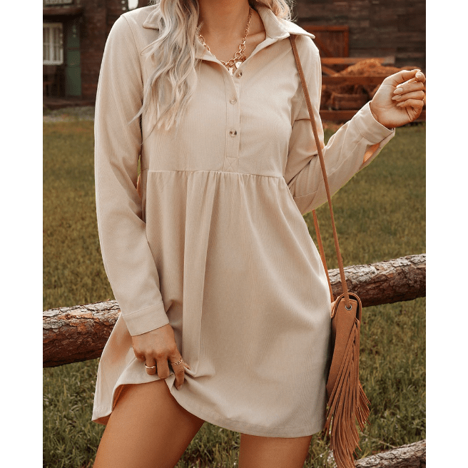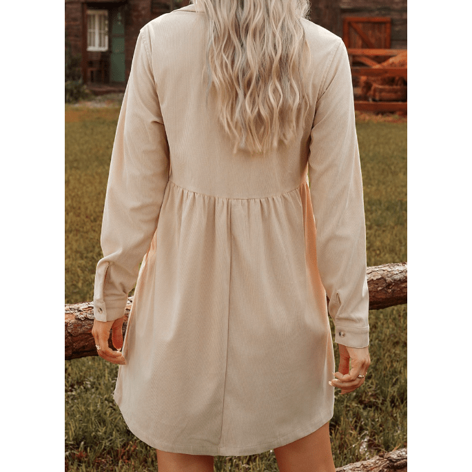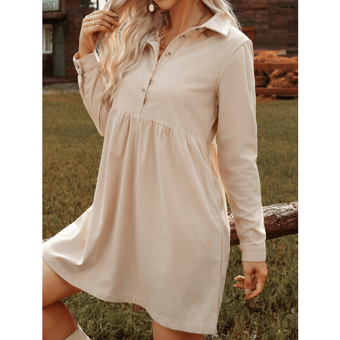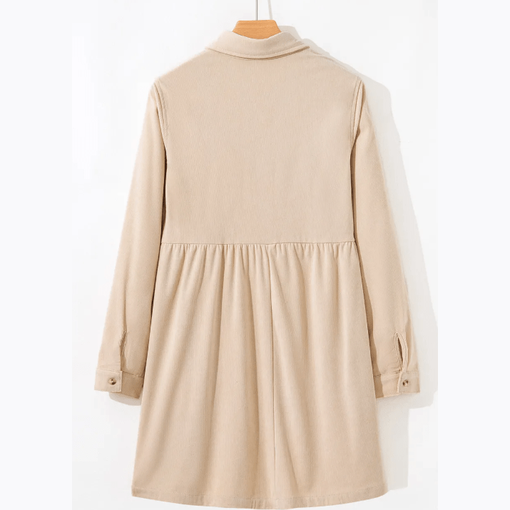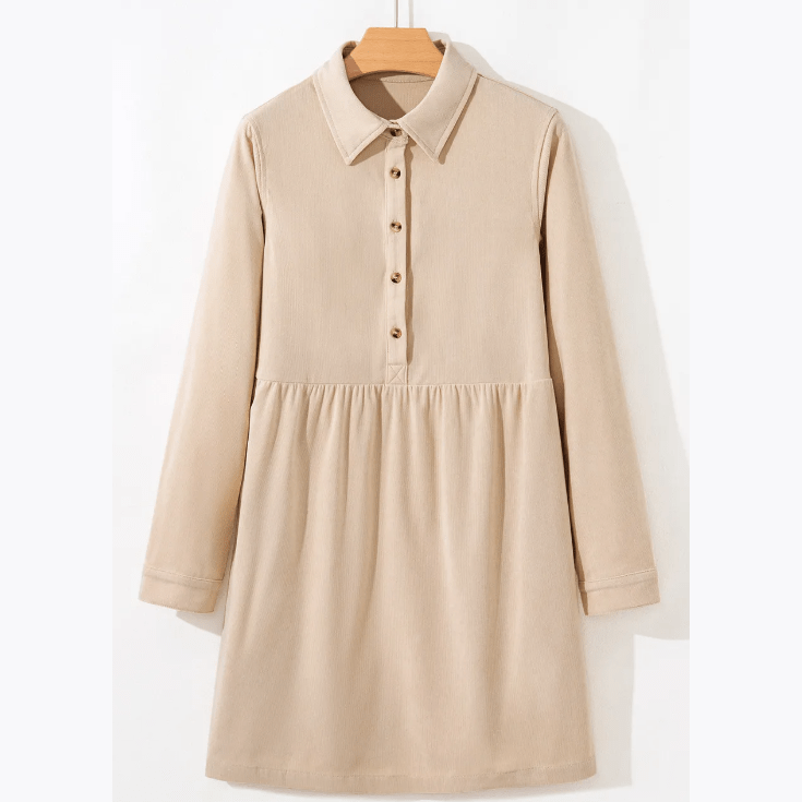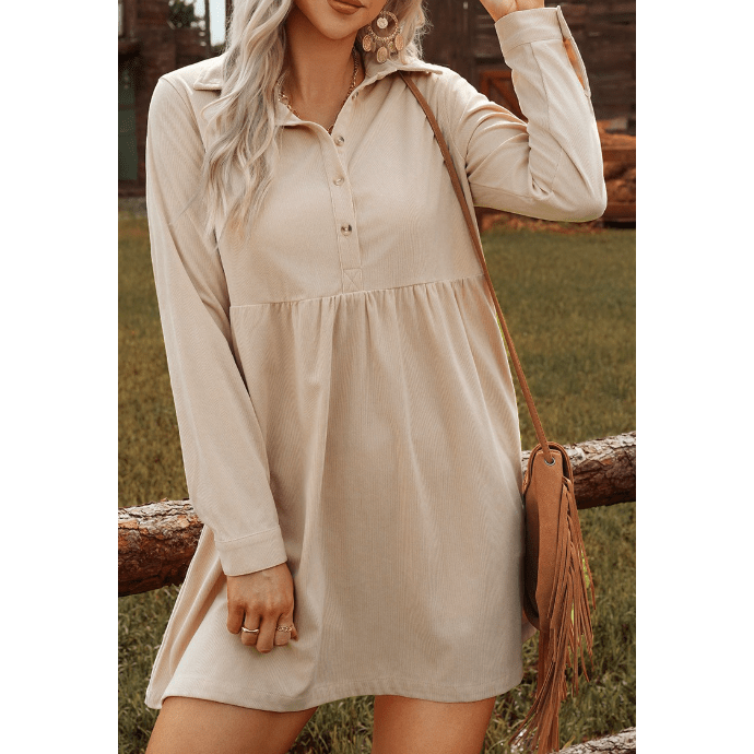 Murray Oatmeal Corduroy Half Button Collared Long Sleeve Mini Dress