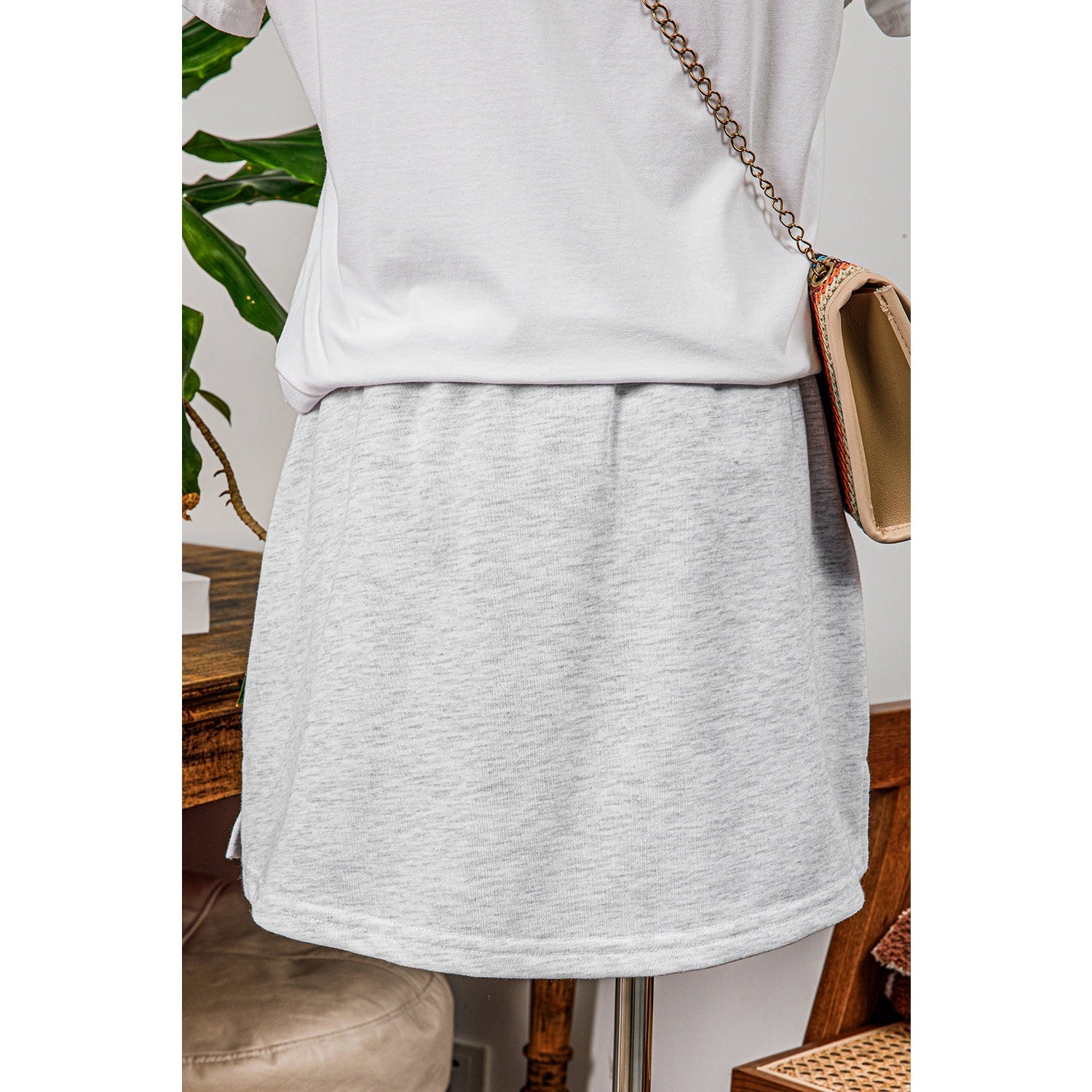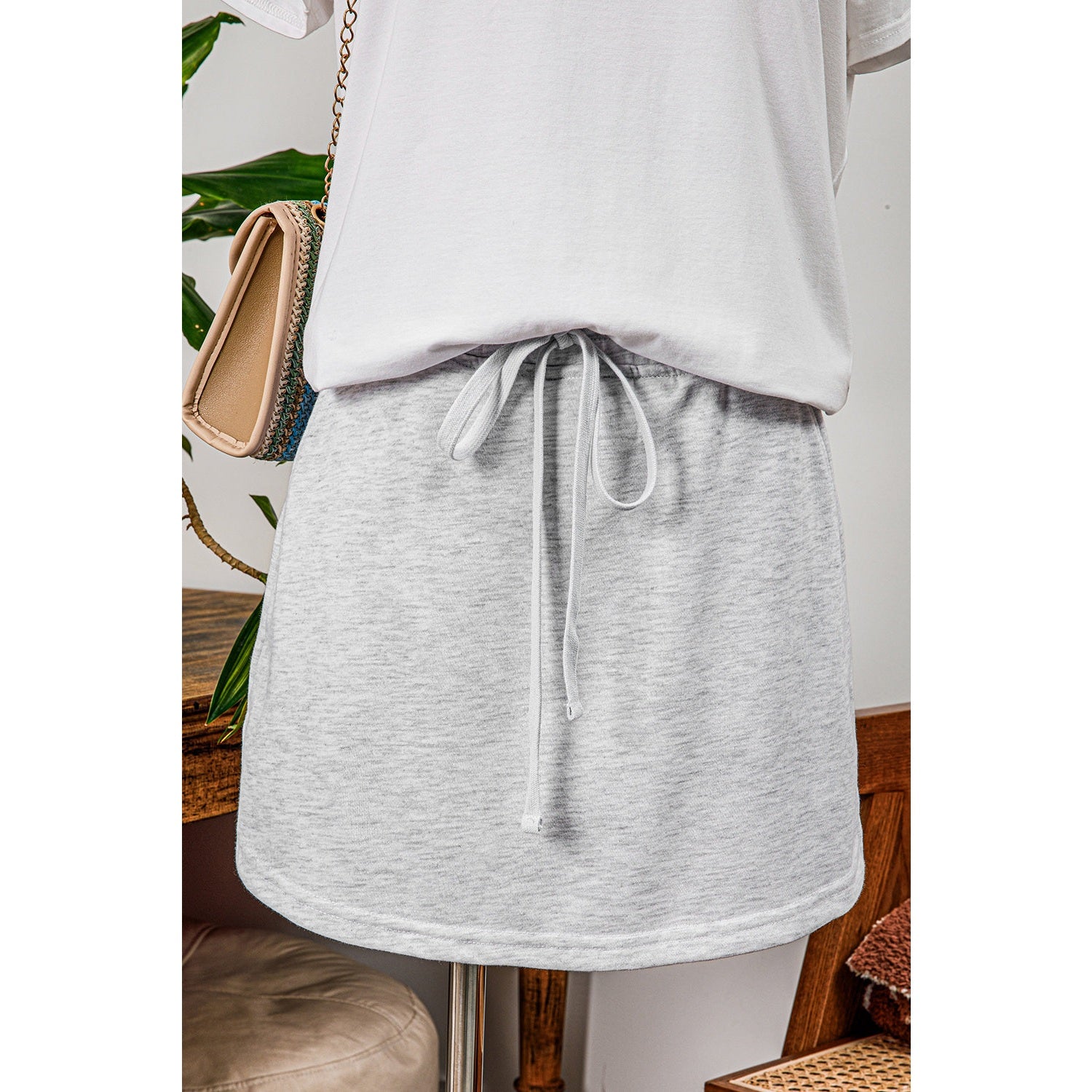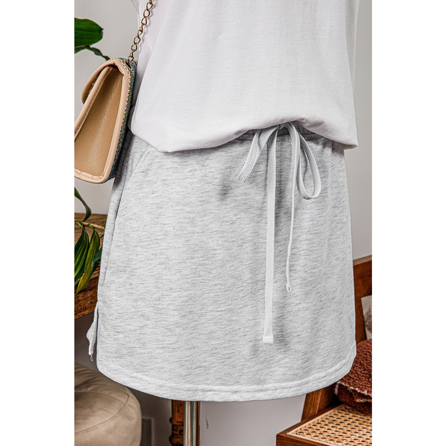 Mya Grey French Terry Drawstring Mini Skort with Pockets
