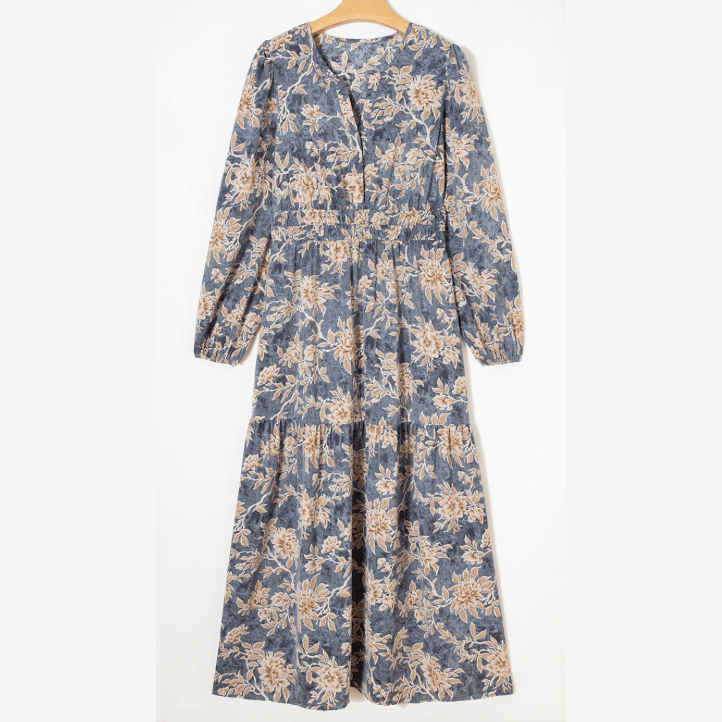 Nixie Floral Print Smocked High Waist Long Sleeve Maxi Dress