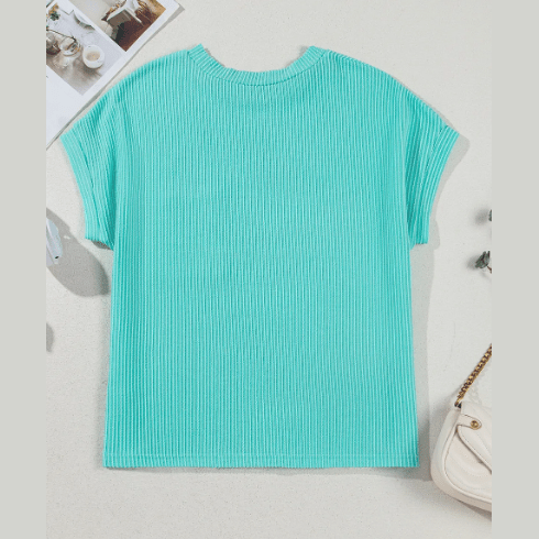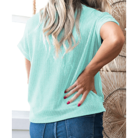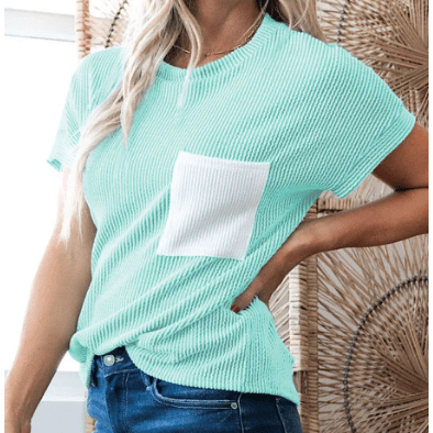 Noelle Mint Corded Knit Color Block Pocketed Crew Neck T Shirt