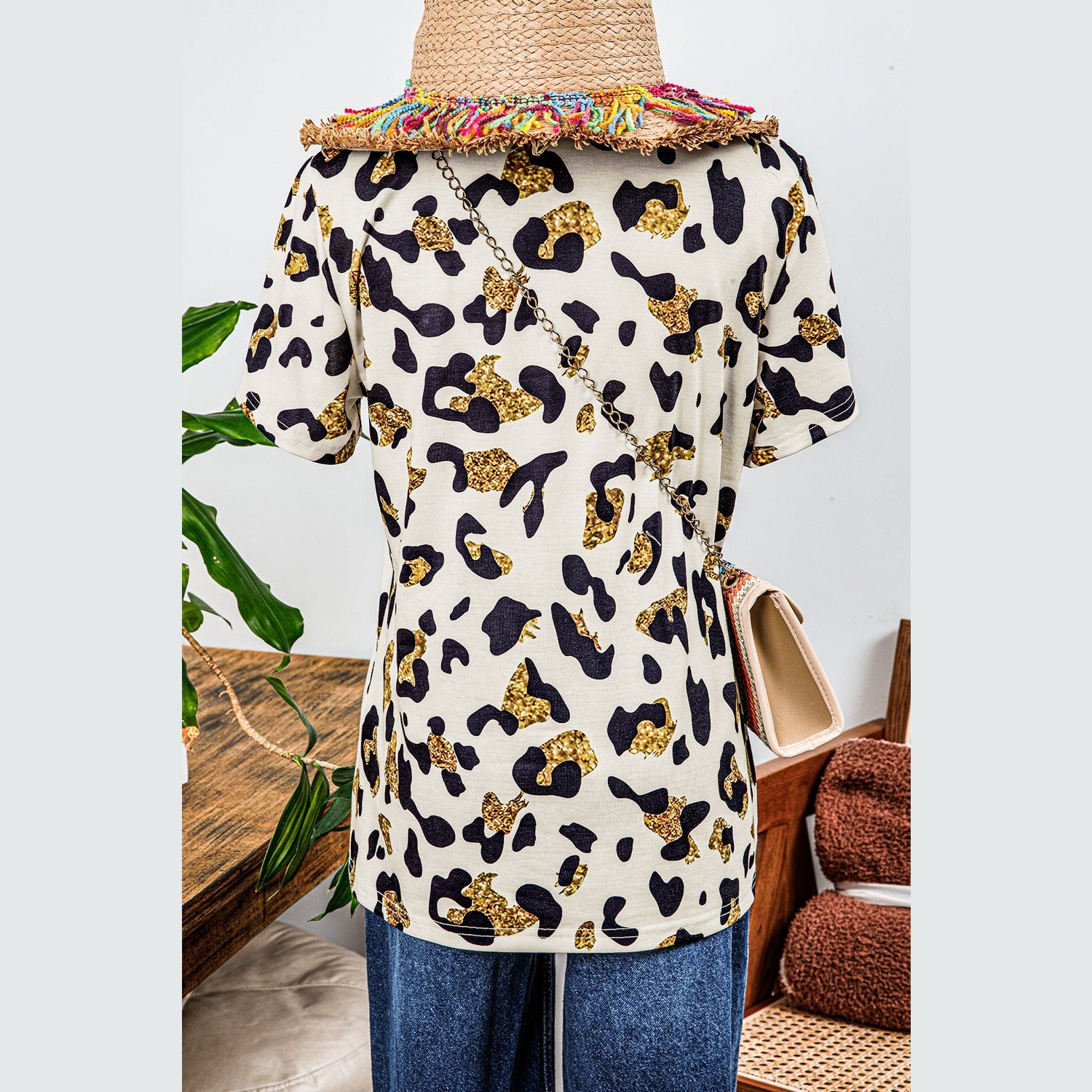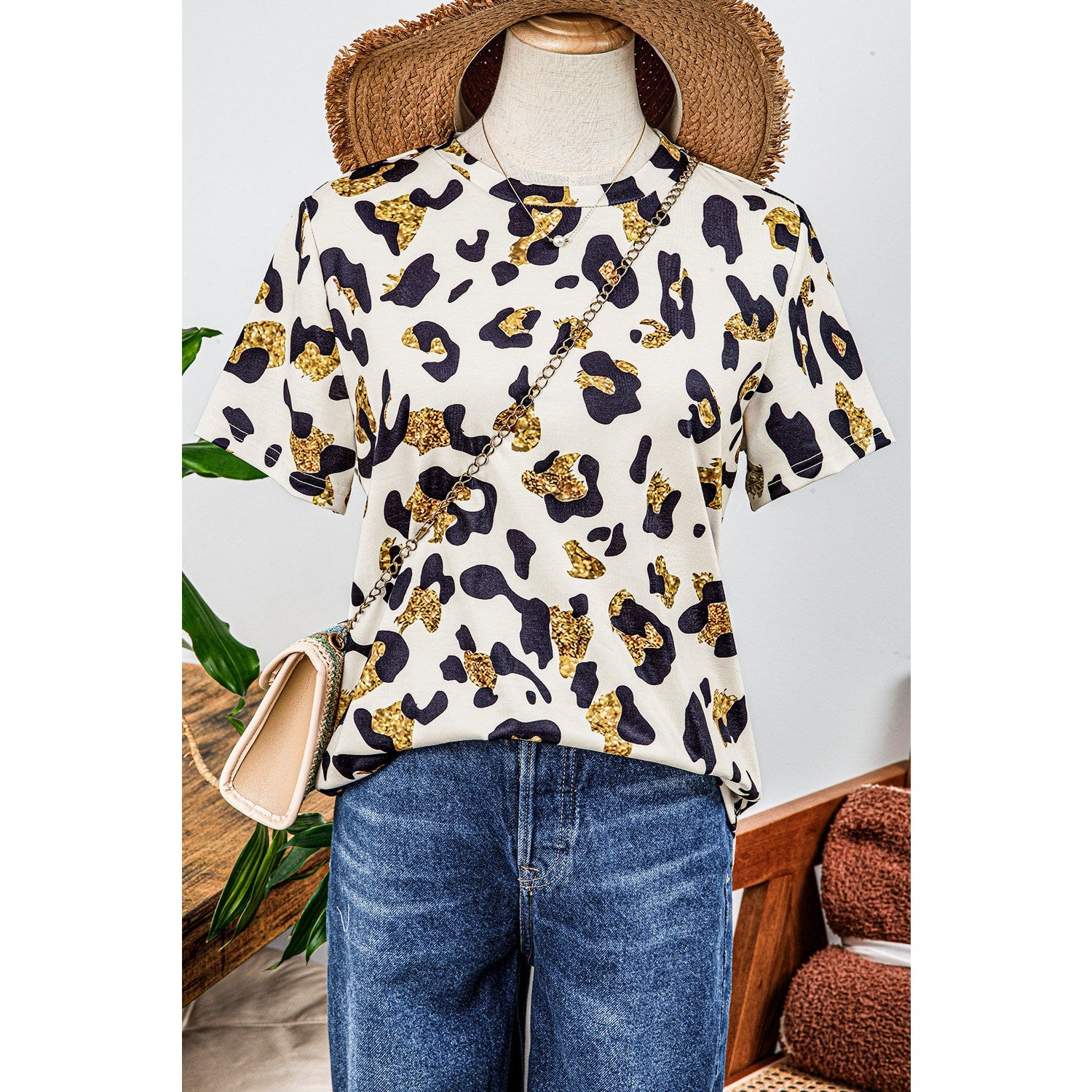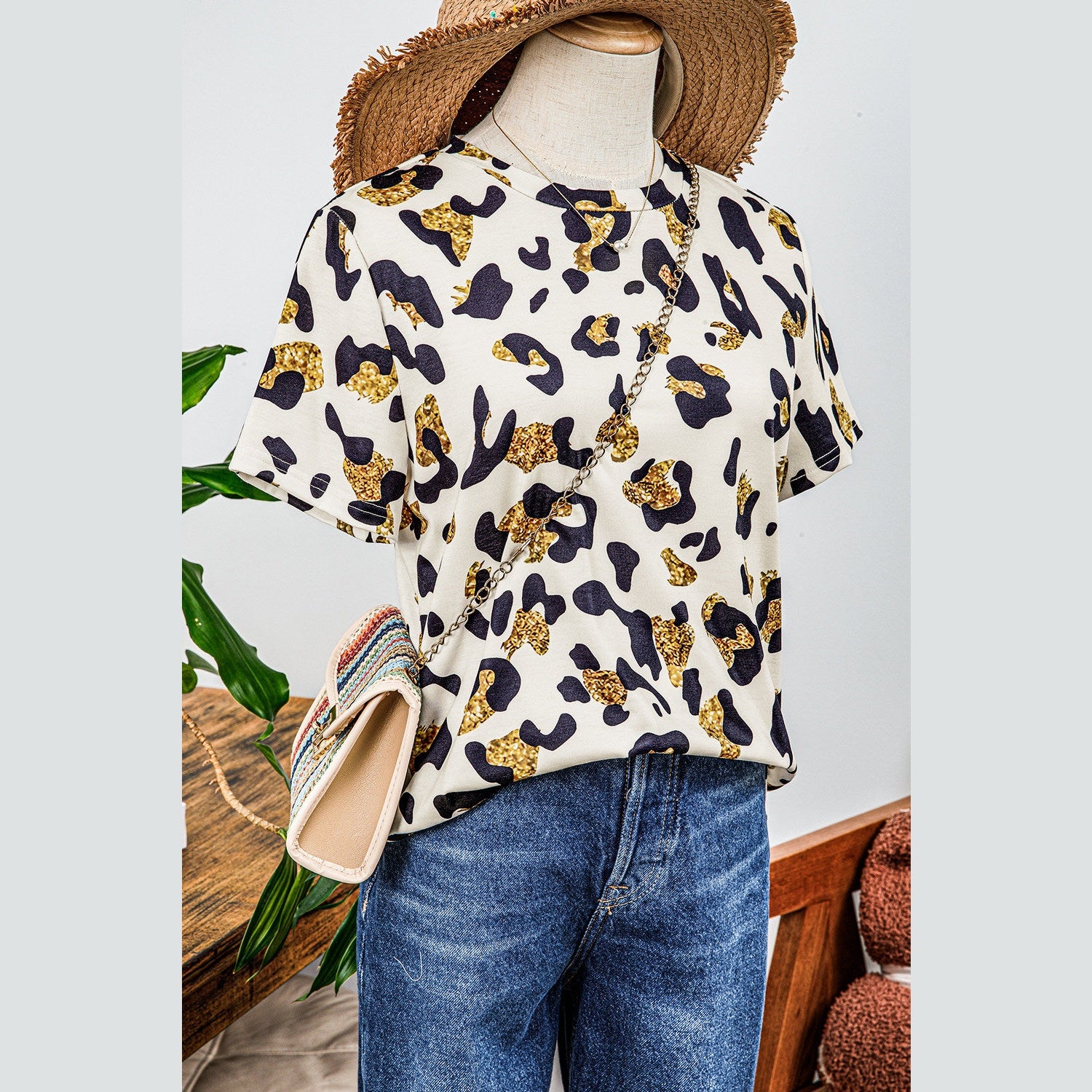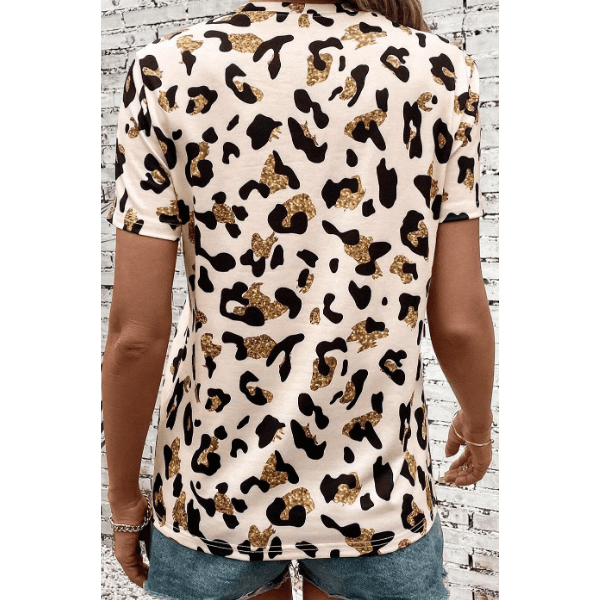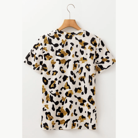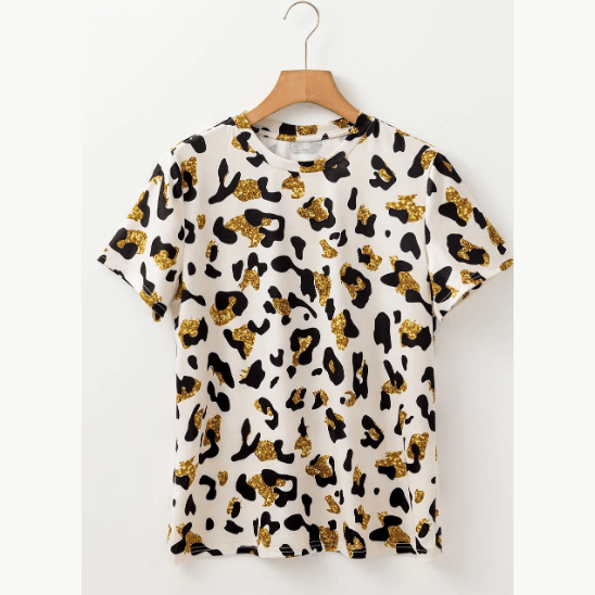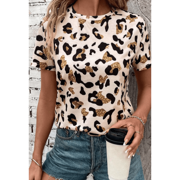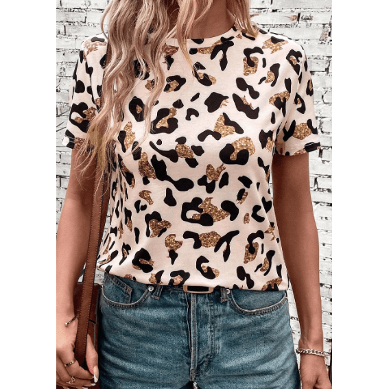 Nona Leopard Print Round Neck Casual T Shirt