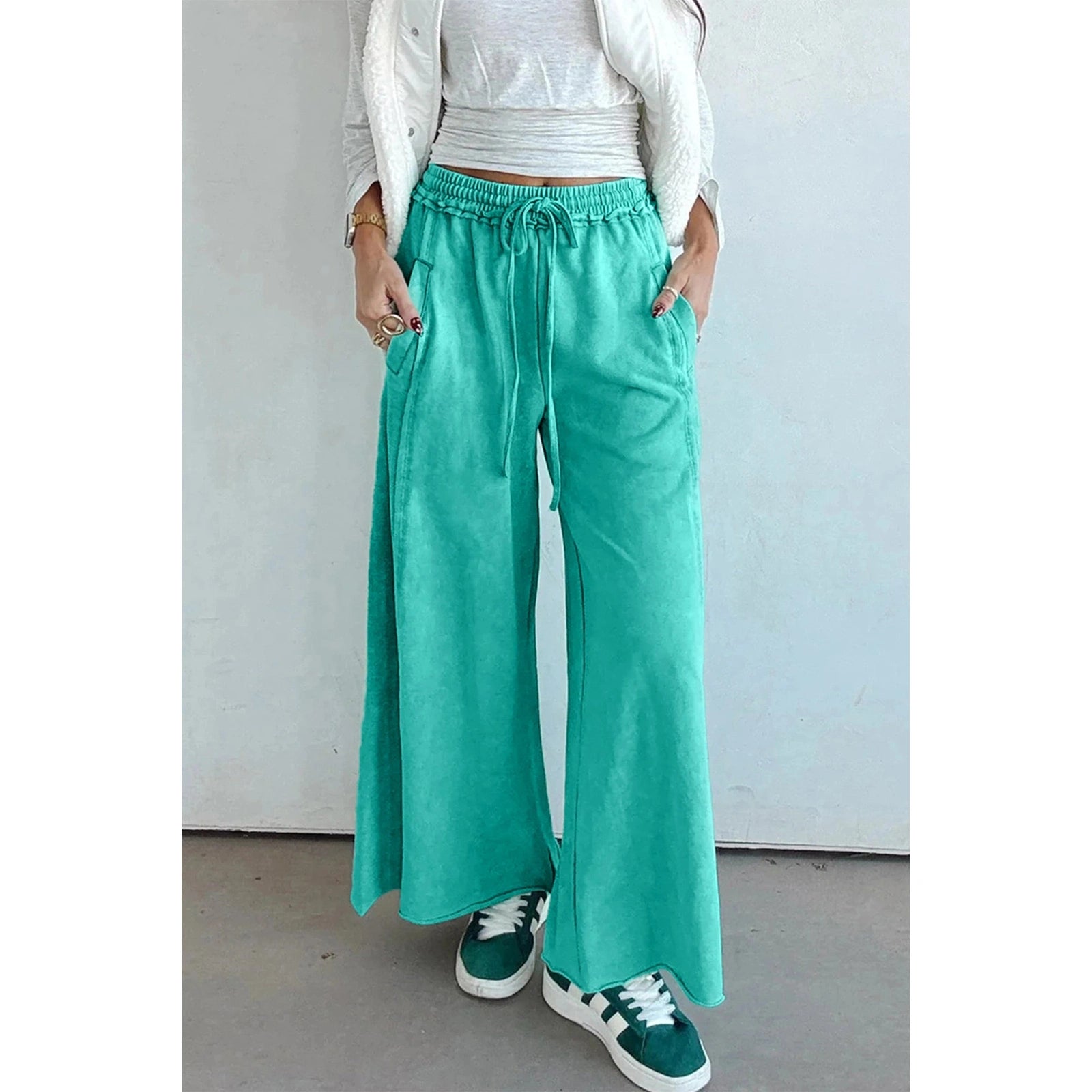 Odessa Sea Green Mineral Wash Drawstring Elastic Waist Raw Hem Loose Pants