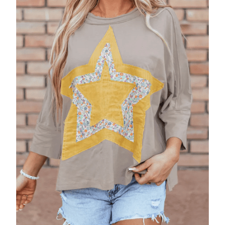 Ollie Grey Floral Starbust Exposed Seam Mineral Wash Top