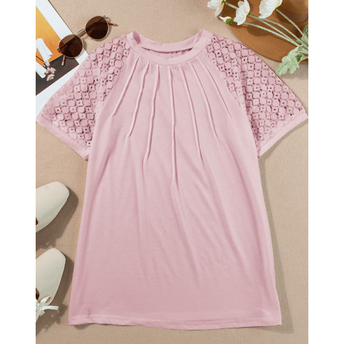 Parkin Pink Seamed Detail Contrast Lace Raglan Sleeve Tee