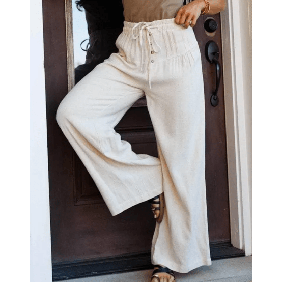 Pippy Drawstring Elastic Waist Button Pleated Detail Wide Leg Pants
