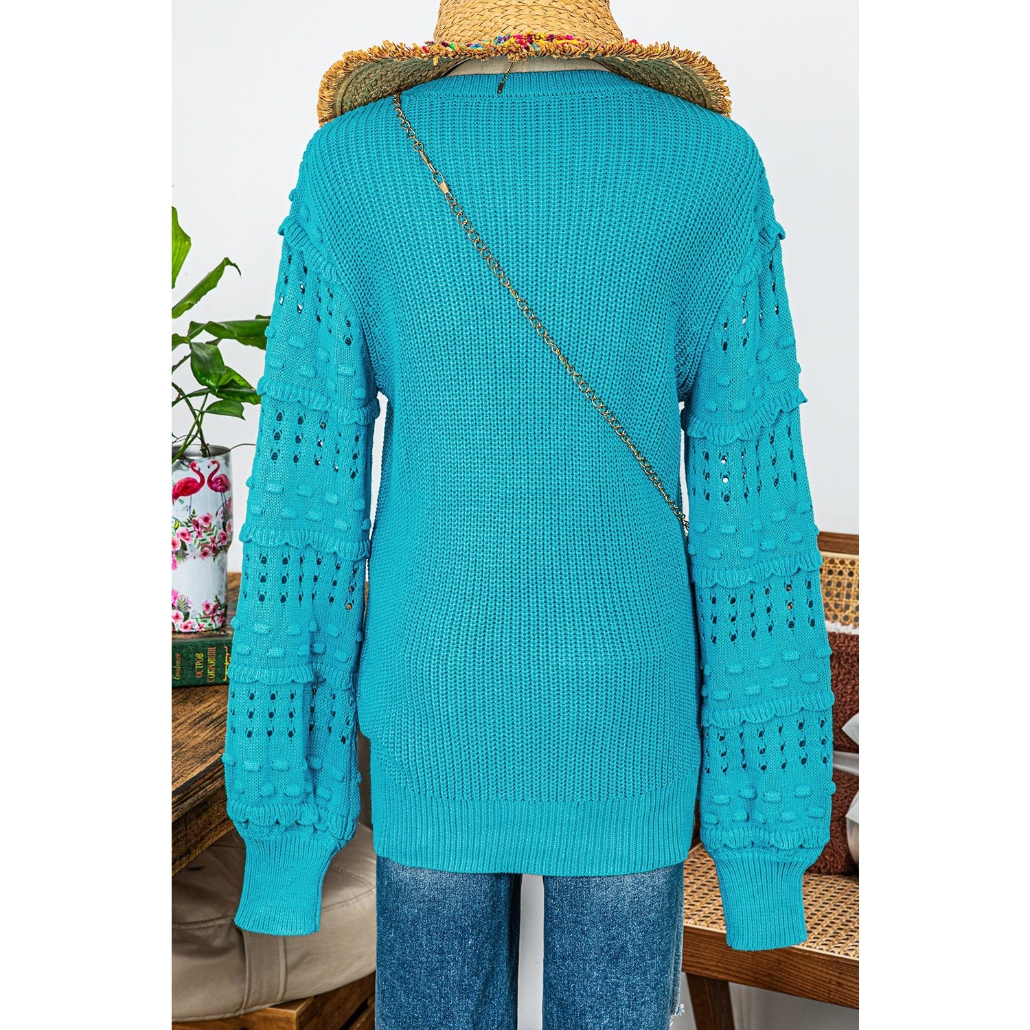Poppy Turquoise Ruffled Eyelet Bubble Sleeve Sweater