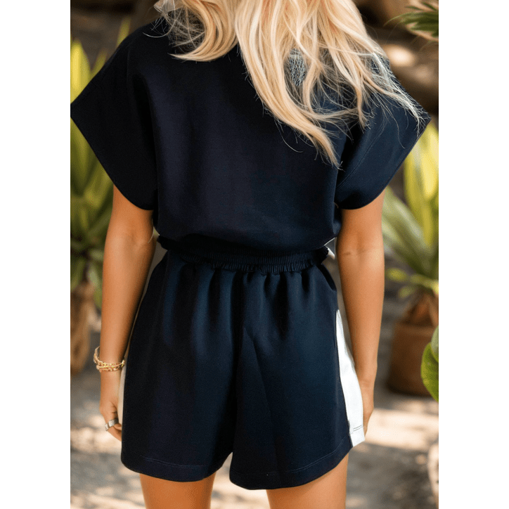 - Wide short sleeves for coolness while elastic high waist for a comfy fit.