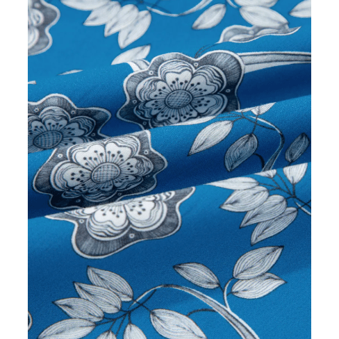 RTS Blue Floral Print Button Tie Neck Striped Detail Short Sleeve Blouse