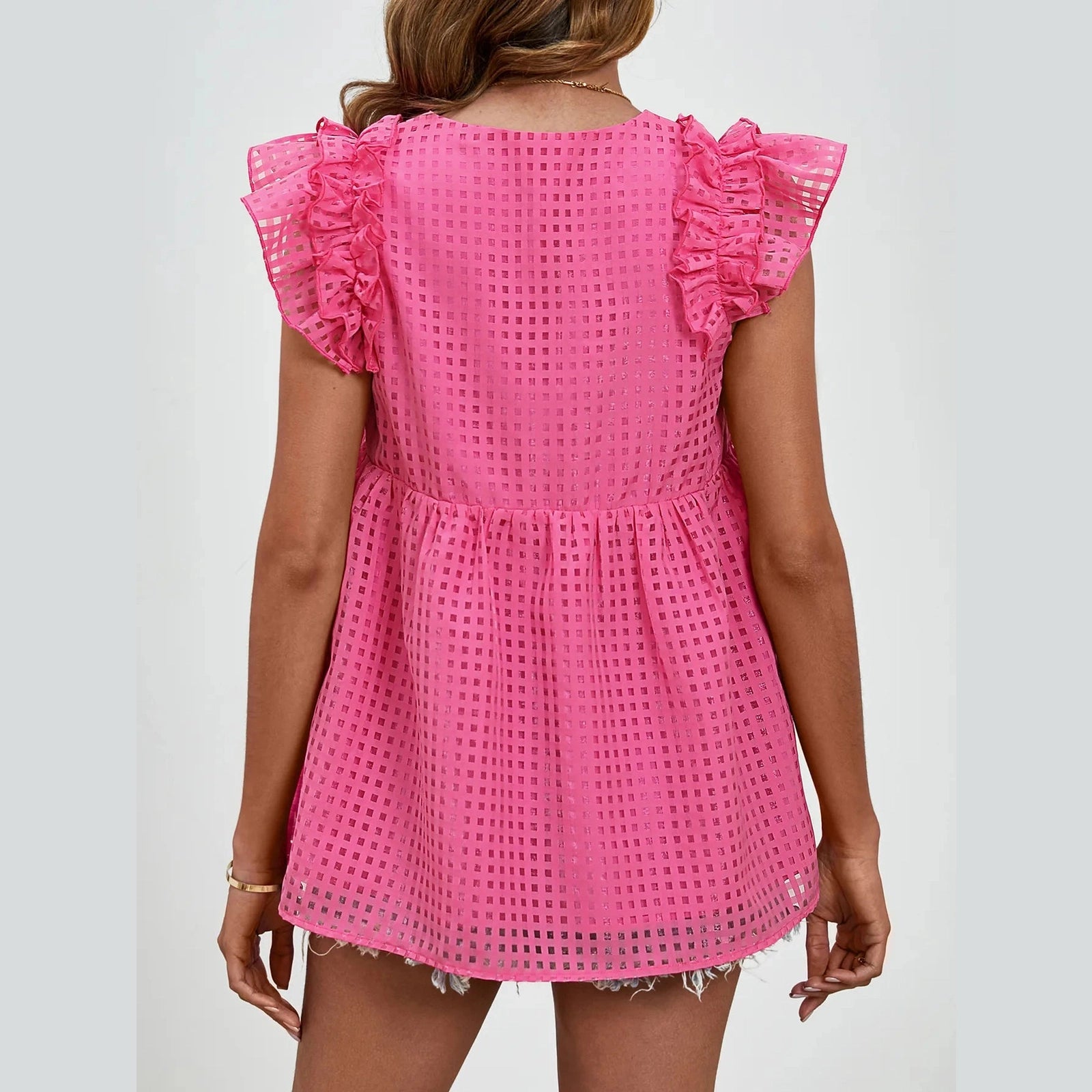 RTS Darianna Hot Pink V Neck Ruffle Babydoll Blouse