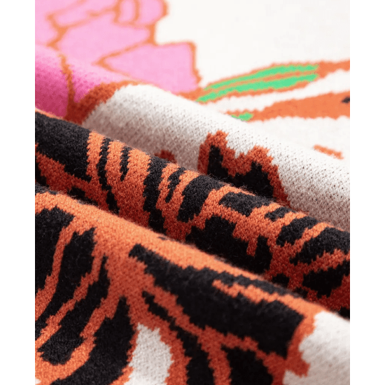 RTS Floral Pattern Knit Quarter Zip Stand Neck Sweater