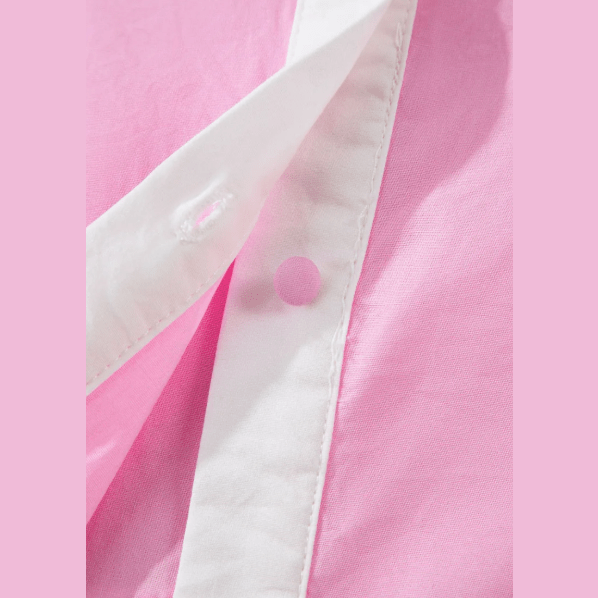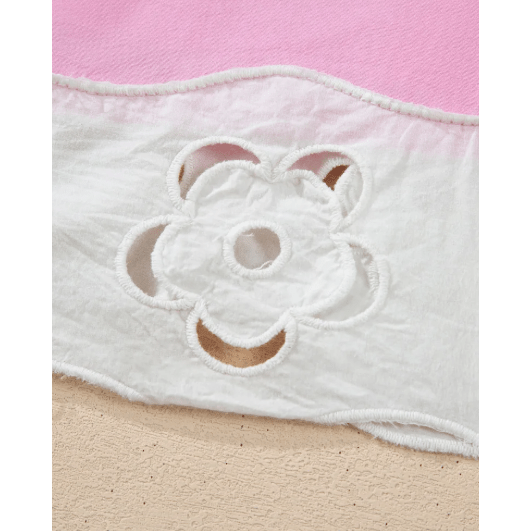 RTS Pink Hollow-out Floral Contrast Patchwork Short Sleeve Button Up Shirt