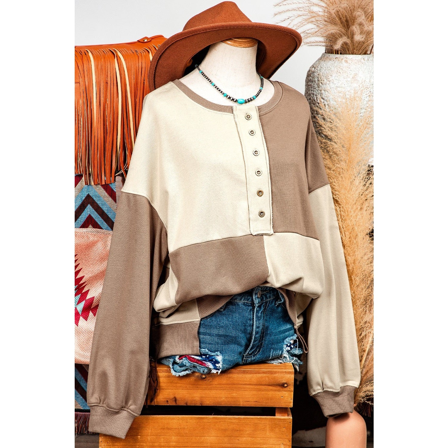 Ryder Parchment Colorblock Henley High Low Oversize Sweatshirt