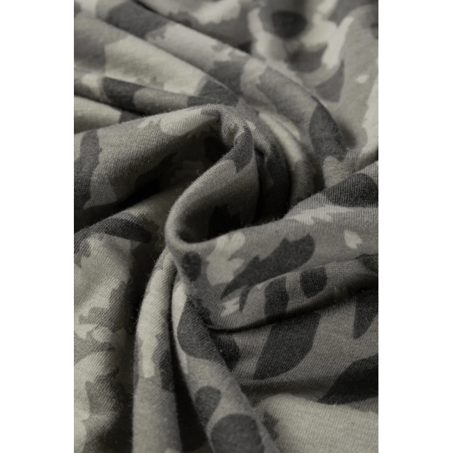 Sadee Grey Leopard Print Raw Seam Patchwork Pullover Drawstring Loose Pant Set
