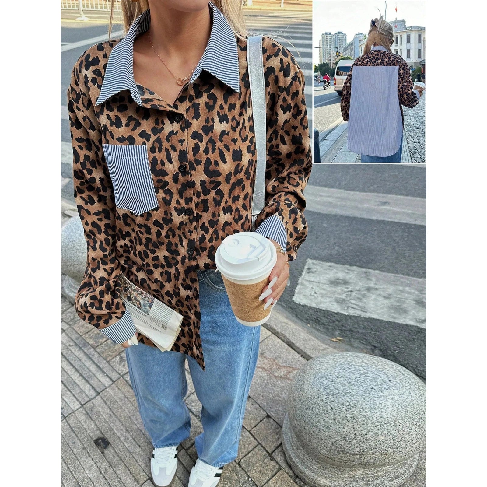 Shay Leopard Print Patchwork Long Sleeve Shirt