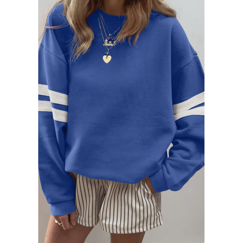 Sky Blue Varsity Striped Detail Drop Shoulder Oversized Sweatshirt