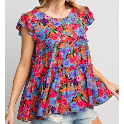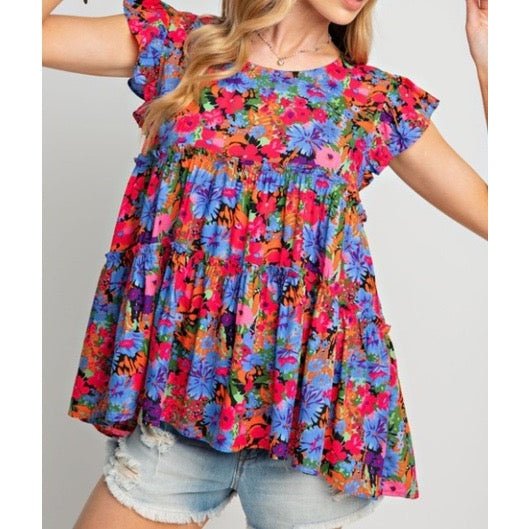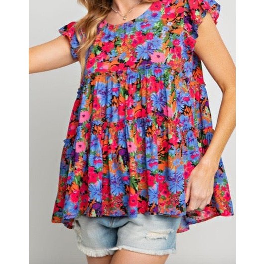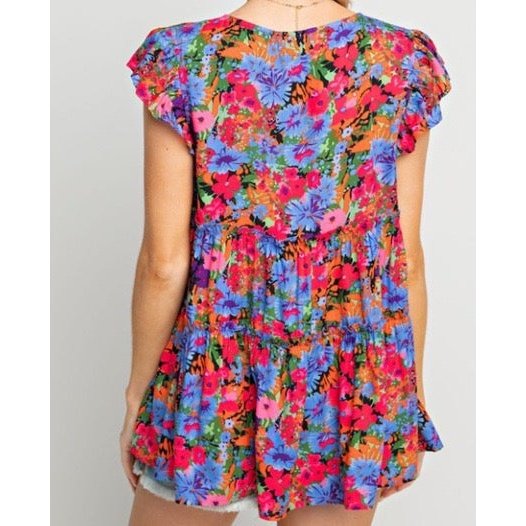 REDUCED!!! Skye Multicolor Floral Print Ruffle Tiered Short Sleeve Babydoll Top REDUCED!!!