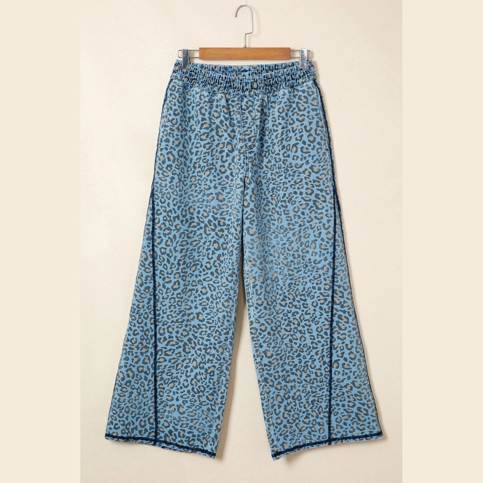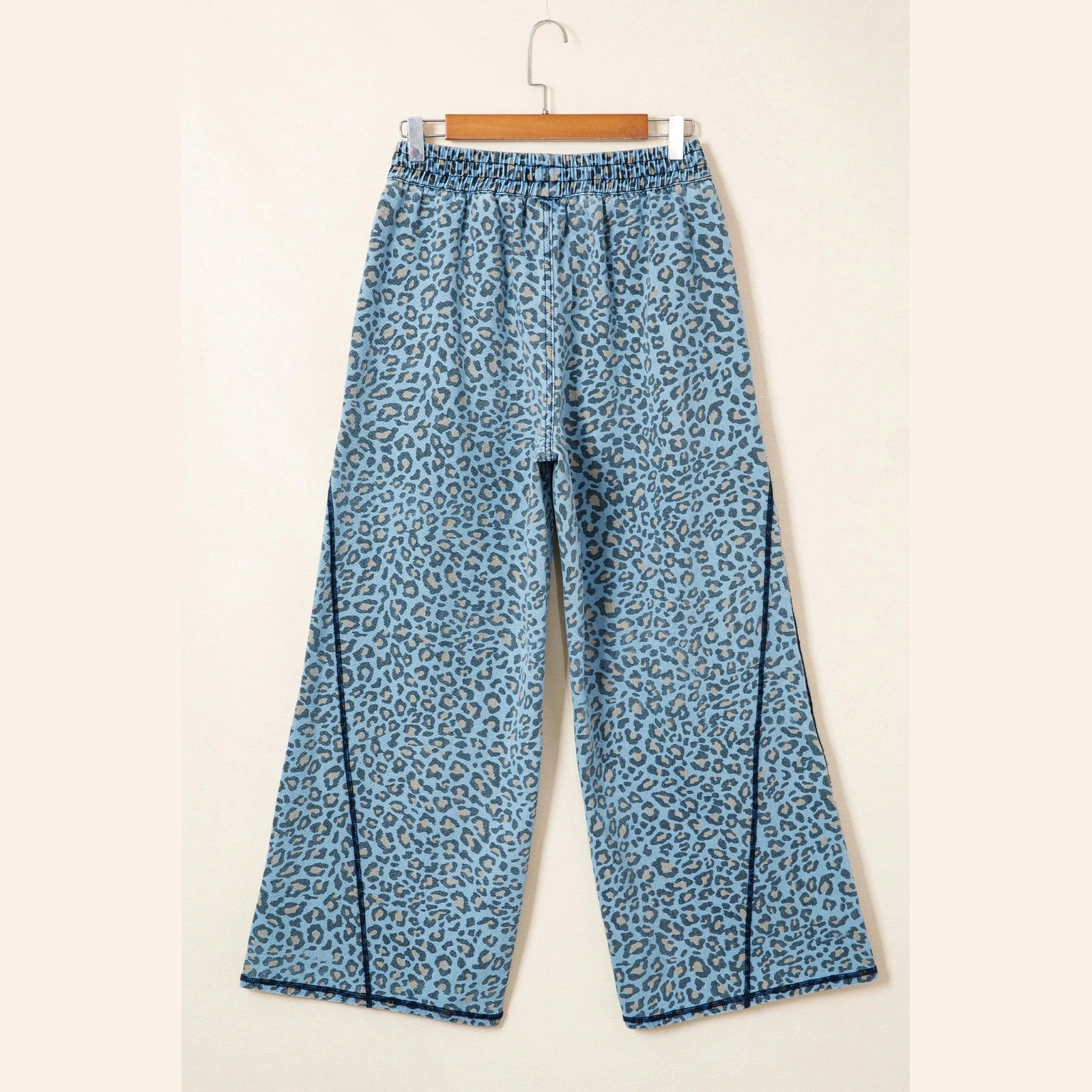 Susina Blue Leopard Print Exposed Seam Detail Wide Leg Drawstring Jeans