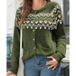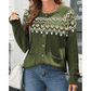 Tamia Moss Green Western Fashion Abstract Printed Cardigan Sweater
