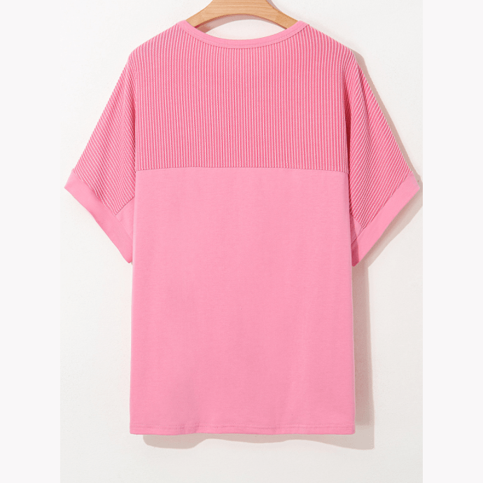 REDUCED!!! Tasnia Bonbon Pink Corded Patchwork Pocketed PLUS SIZE T Shirt REDUCED!!!