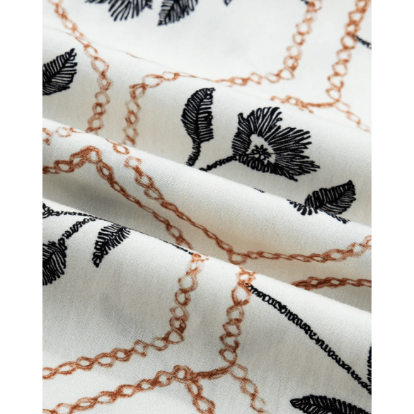 - This summer blouse features an all-over floral and geometric print blend silhouette.