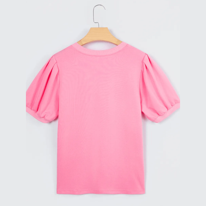 Tula Bonbon Pink V Neck Short Puff Sleeve Blouse