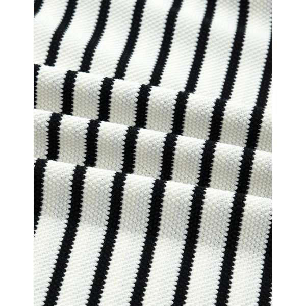 - The striped and flutter sleeve details add a unique touch.