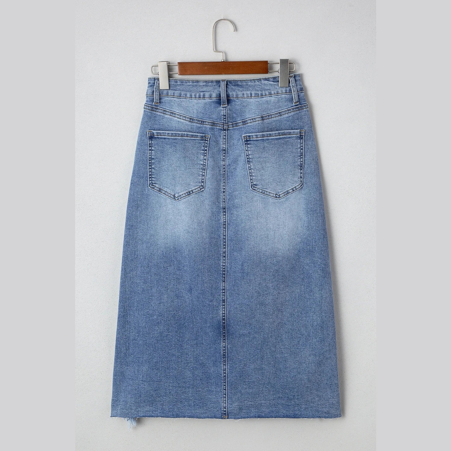 Vittoria Irregular Distressed Bottom Denim Midi Skirt