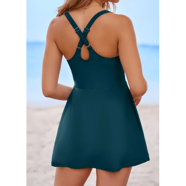 Waverly Teal Contrast Edge Ruffled High Waist One Piece Swim Dress