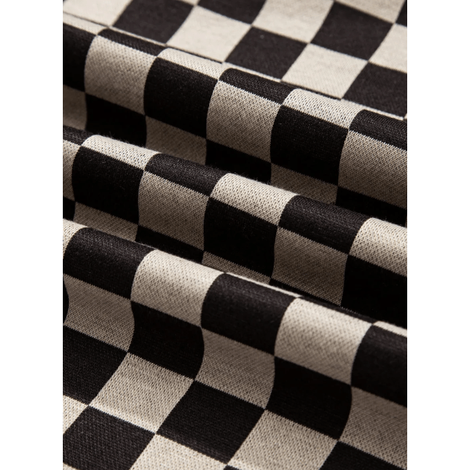- The mixed checkered pattern creates a chic casual silhouette.